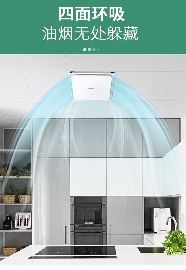 1、集成吊顶换气扇采用优质ABS工程材料,360°四面大开口换气,进风量更大,排烟换气更实用。