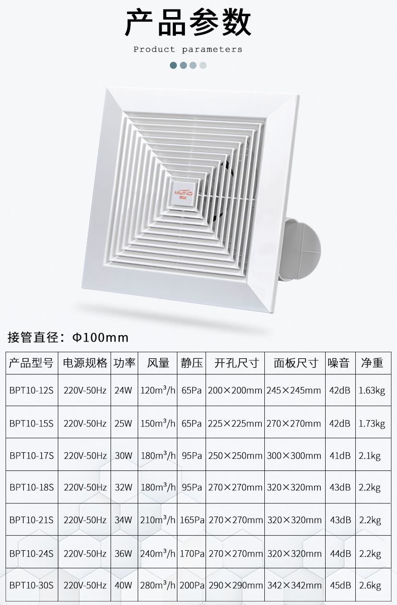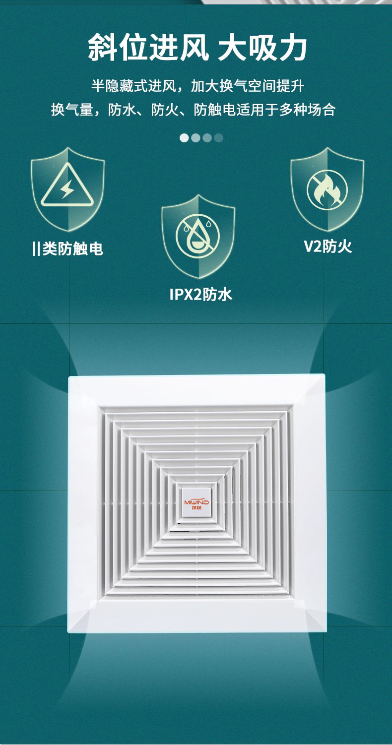 3、IPX2防水等级,防潮防腐,天花吸顶简易安装,防止贯流止回阀可防止蚊虫进入。