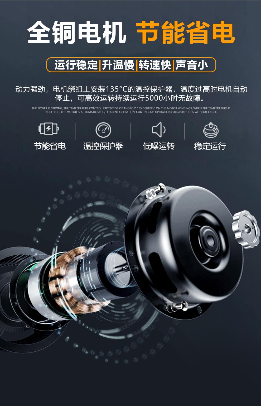3、调节导风条设计可减少和阻隔室内外空气对流,采用全铜芯滚珠轴承电机搭配不等距贯流风轮,降低噪音,风力强劲,运行平稳。