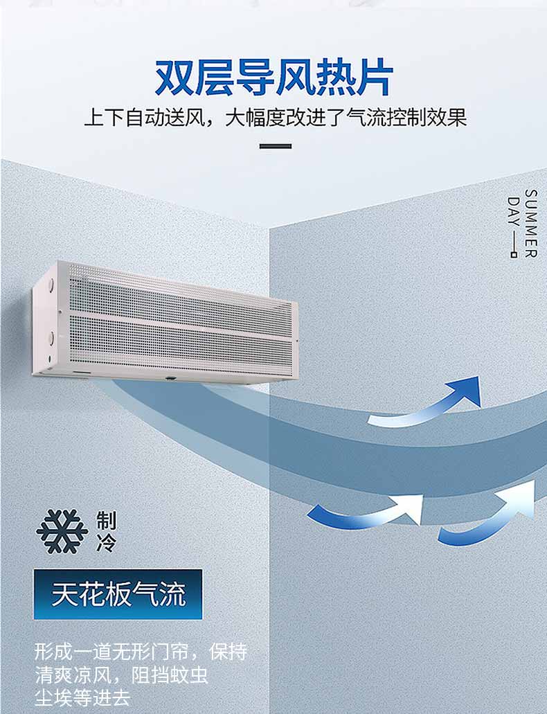 3、水暖风幕机出风口喷射出一定厚度的均匀气流,可阻挡室外冷空气侵入,填充室热空气,减少室内热量损失,达到保持室内温度的目的。