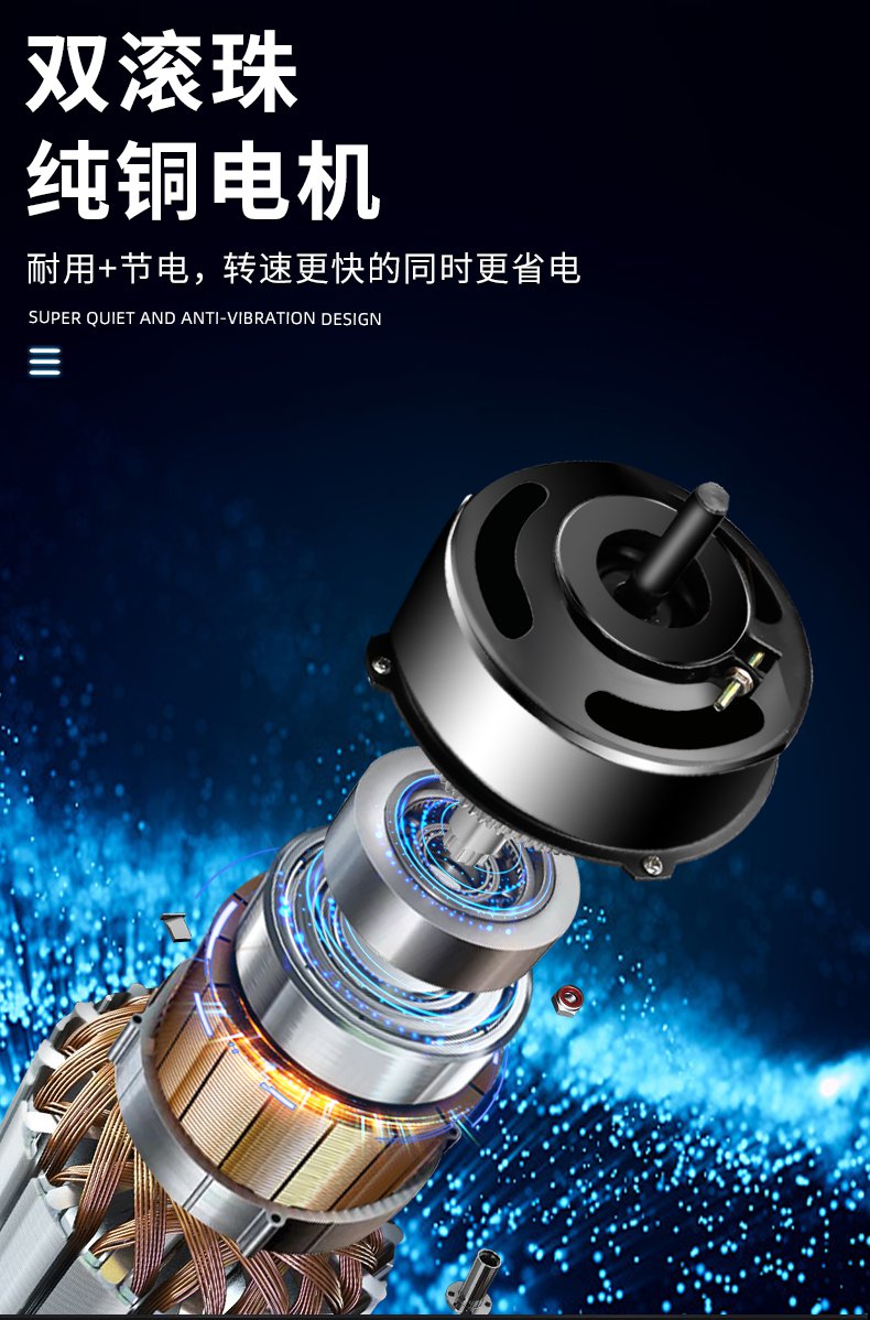 3、全铜芯滚珠轴承电机搭配离心涡轮,噪音低,寿命长,独特的导风条设计,风向可手动自由调节。
