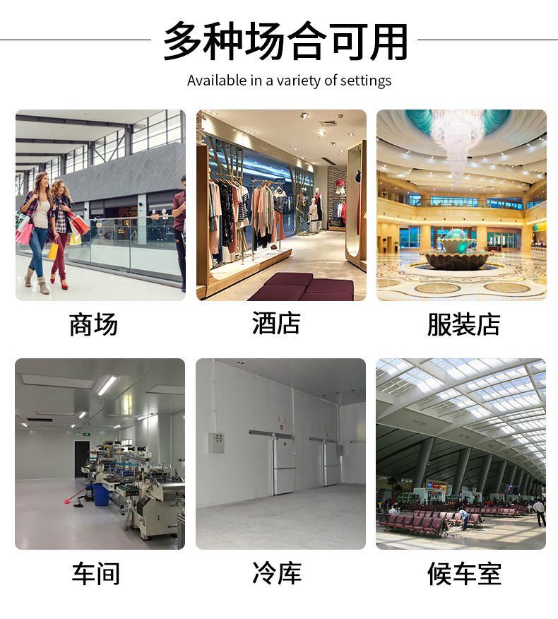4、广角送风,防止冷(暖)气外流,节省用电持续形成的空气门,能有效防止冷(暖)气外泄,节省用电,辅助循环调节温度,达到节约能源改善环境的目的。