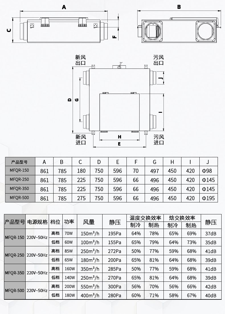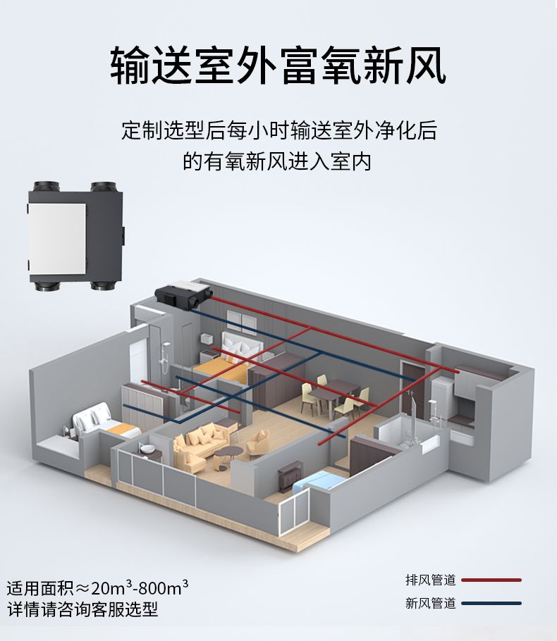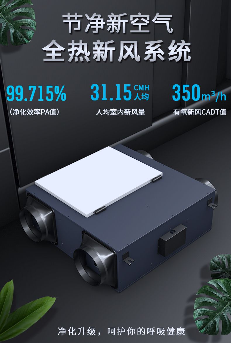 3、节能环保:夏季运行时,新风从空调排风获得冷量,使温度降低,同时被空调风干燥,使新风含湿量降低;冬季运行时,新风从空调室排风获得热量,温度升高。这样,通过换热芯体的全热换热过程,让新风从空调排风中回收能量。